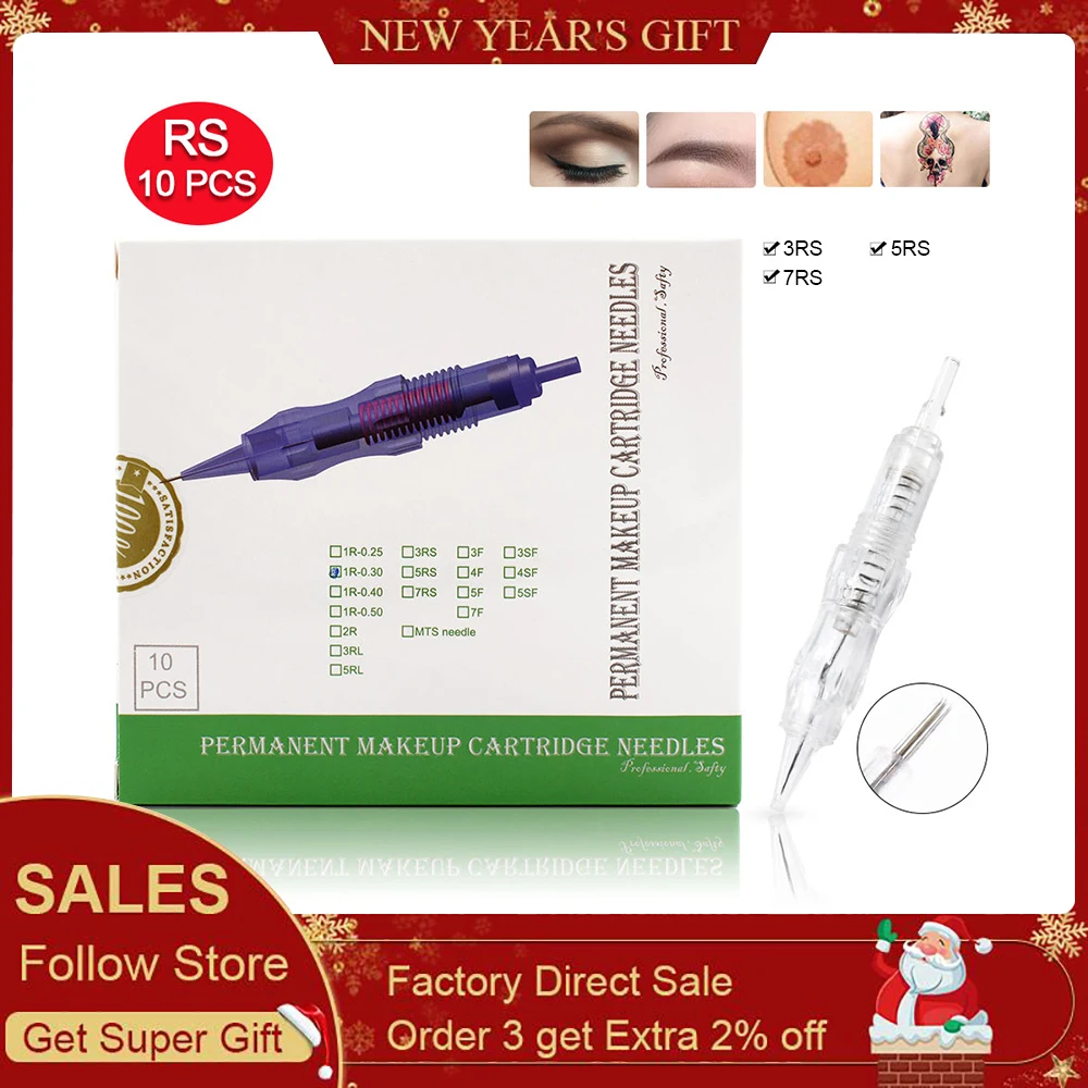 | Biomaser 10pcs Cartridge Needle 3RS 5RS 7RS Permanent makeup Needles Disposable for Eyebrow lip Makeup Pen Tattoo Machine Needle |
