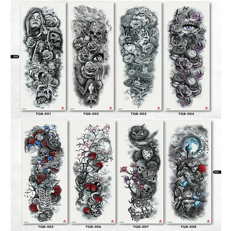 | Full Skull Large Arm Sleeves Waterproof Temporary Tattoo Sticker Man Women Fake Color Totem Tattoo Stickers Body Leg Arm TQB02 |