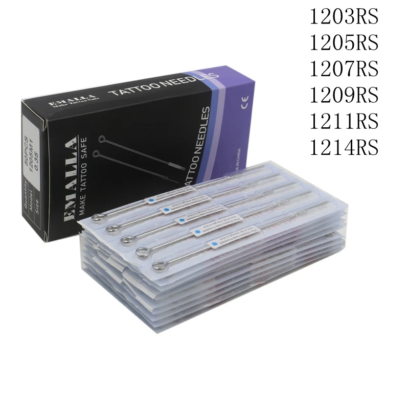 Best Price Comparison With EMALLA 50Pcs 0.35MM Disposable Sterilized round shader Tattoo Needle Medical For Tattoo Machine Gun Liner Shader 35791114RS