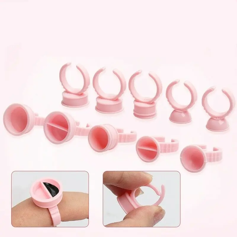 | 100x Disposable Pink False Eyelash Glue Ring Adhesive Tattoo Pigment Ink Holder DividerUndivider Permanent Makeup Cups |