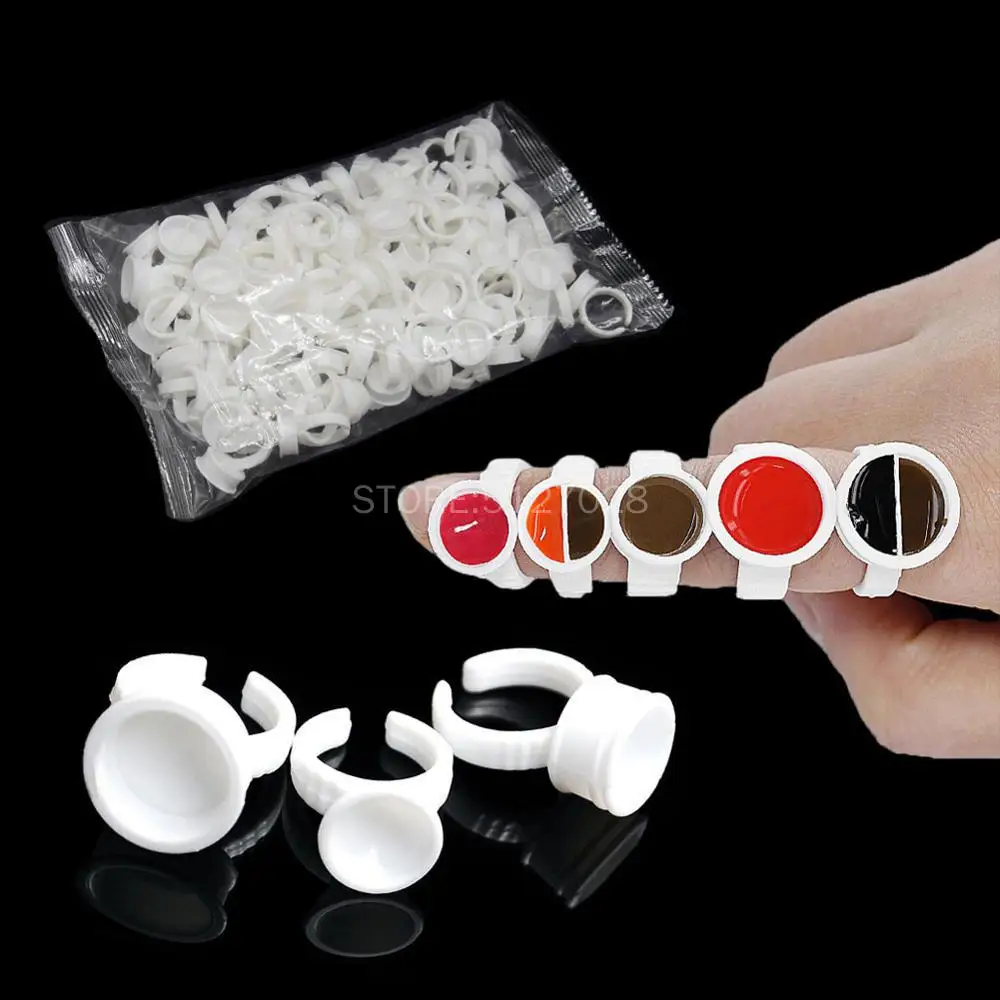 | Disposable 100pcs Tattoo Ink Rings Cups SML Permanent Makeup Pigment Holder Eyebrow Eyelash Extension Glue Divider Container |