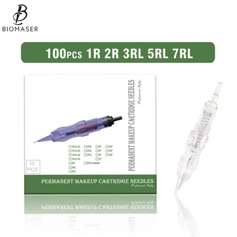 | Biomaser 100Pcs Screw Cartridges Needles Permanent Makeup Machine Professional Needles for Specify Machine 1R,2R,3RL,5RL 3RS |