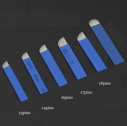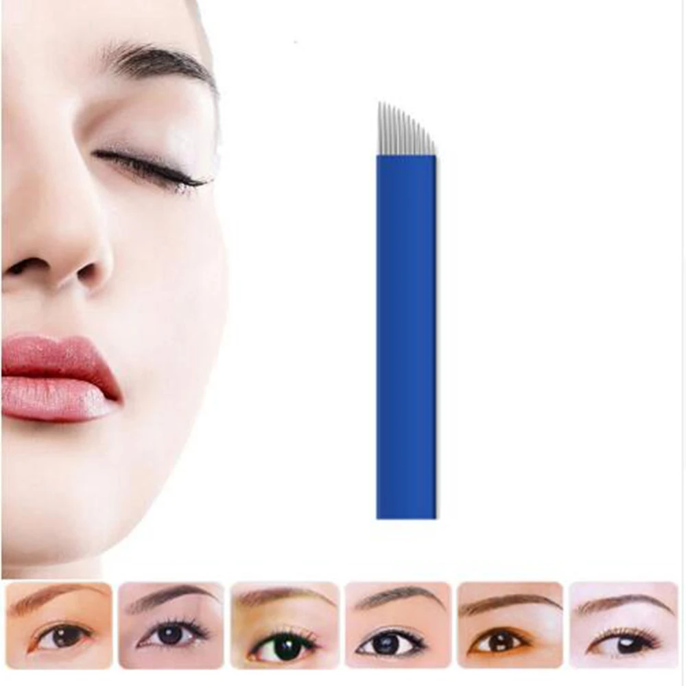 | 50 PCS Blue 17-Pin Permanent Makeup Manual Eyebrow Tattoo Needles Blade for 3D Embroidery Microblading Tattoo Pen Machine SUPPLY |
